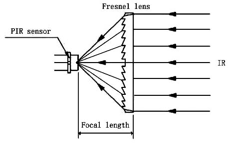 The Fresnel lens and amplifying circuit suitably, but will amplification 70 decibels, such pyroelectric infrared sensor can be detected 10 ~ 40 meters geographical area action.